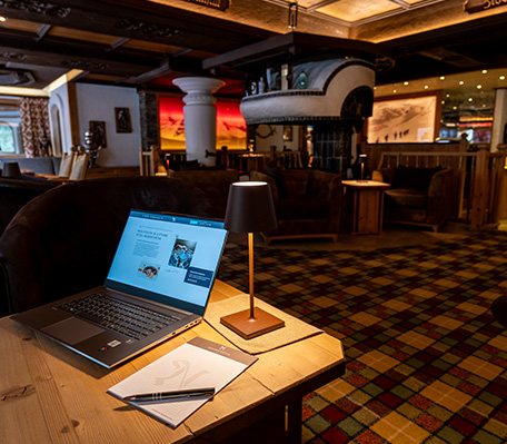Outside of your room or our conference rooms, you will find numerous quiet workspaces. Whether you retreat to a quiet corner in the hotel, gather fresh ideas on our terrace, or refine concepts in the cozy fireplace room – you have the choice. Here, you can be productive and let your eyes wander into the distance, enjoying the breathtaking mountain scenery.